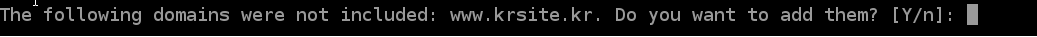 30 4 1 * * service httpd stop 30 4 1 * * /usr/local/src/letsencrypt-auto certonly --manual --email **gksrnrgozjxla@naver.com** -d **www.krsite.kr**